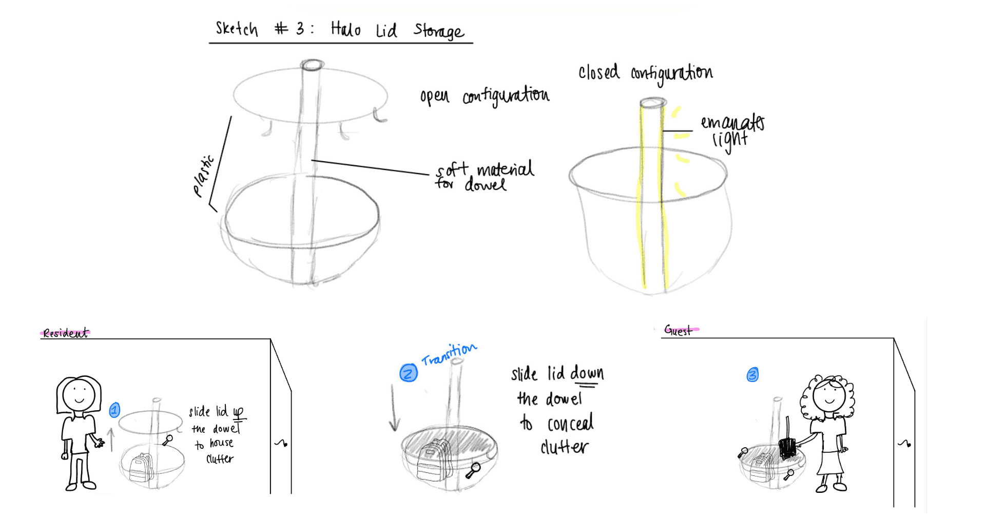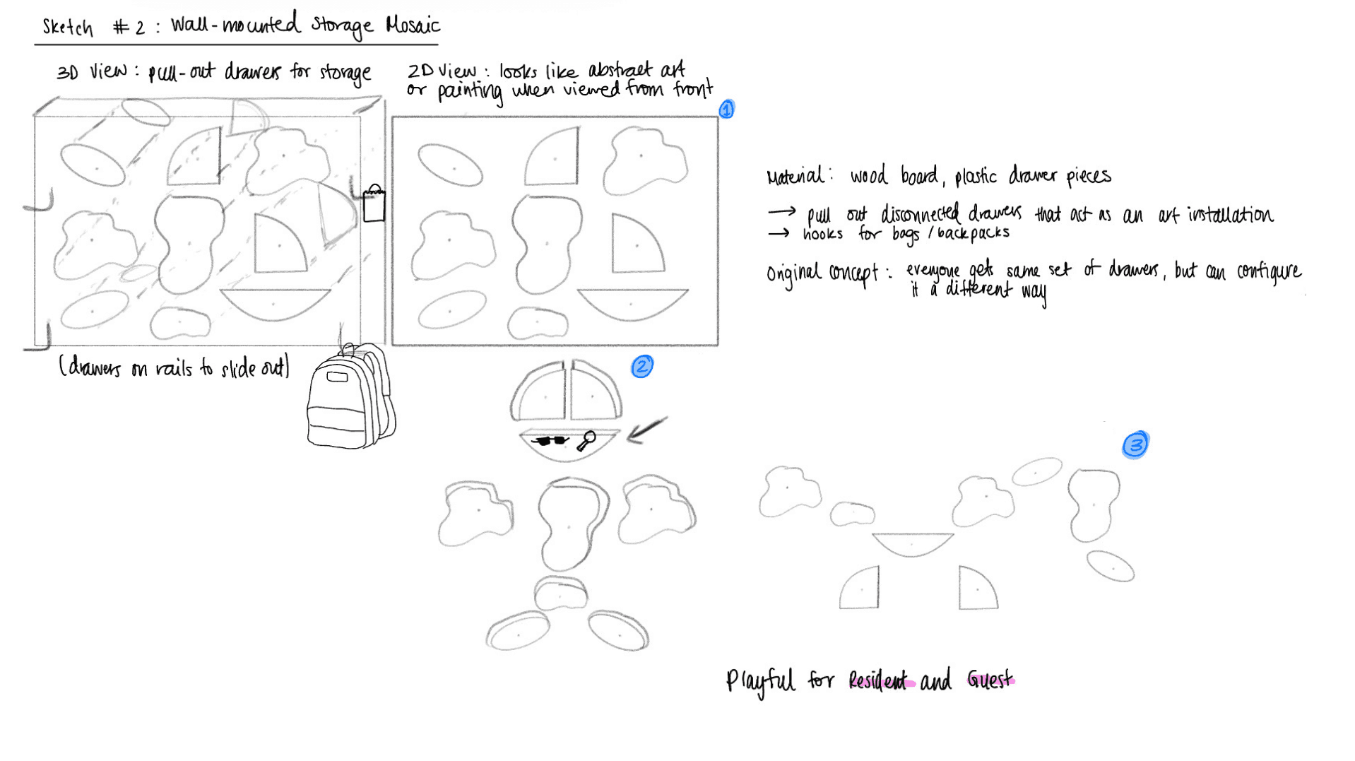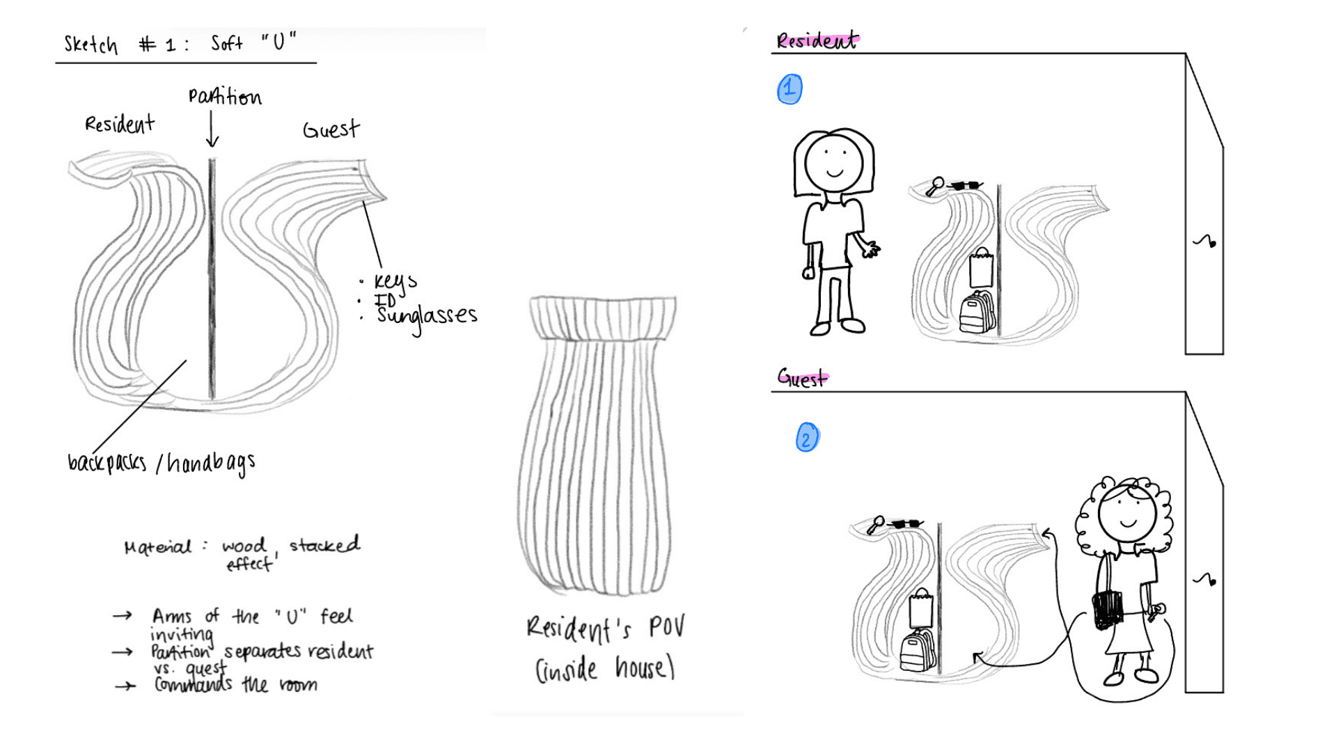 Guest vs. resident split is the clearest usability win → exaggerate the separation with form/height cues so guests intuitively know where to place items.