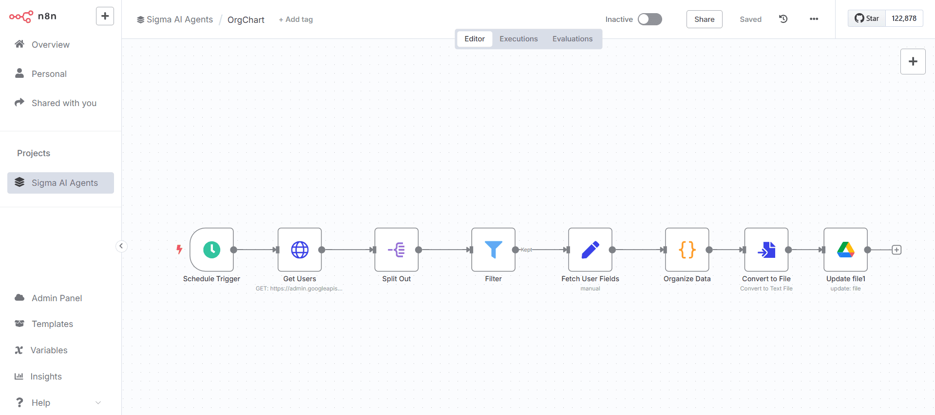 Operations Automation: Sigma’s 300+ employees lacked a searchable, up-to-date org chart. Manual management was error-prone and provided no self-service lookup.